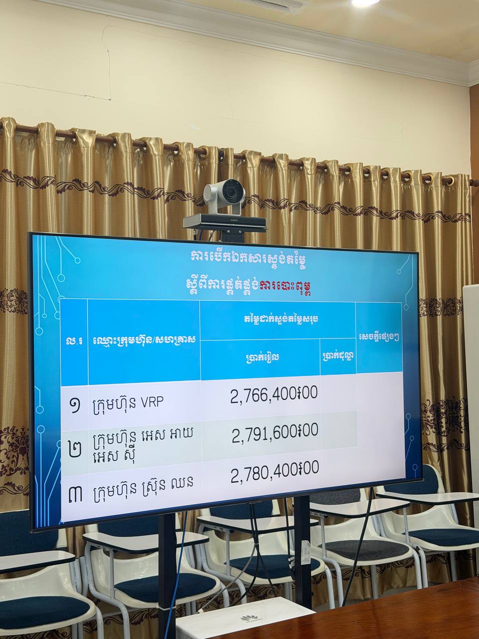 ខេត្តប៉ៃលិន៖ ថ្ងៃព្រហស្បតិ៍ ១១កើត ខែមាឃ ឆ្នាំម្សាញ់ សប្តស័ក ព.ស.២៥៦៩ ត្រូវនឹងថ្ងៃទី២៩ ខែមករា ឆ្នាំ២០២៦ លោក ប៉ូច សាអែម ប្រធានមន្ទីរ និងជាប្រធានក្រុមលទ្ធកម្មនៃមន្ទីរសេដ្ឋកិច្ចនិងហិរញ្ញវត្ថុខេត្តប៉ៃលិន បានបើកកិច្ចប្រជុំស្តីពីការចូលរួមបើកឯកសារស្ទង់តម្លៃ ដើម្បីស្វែងរកក្រុមហ៊ុន/សហគ្រាសក្នុងការផ្គង់ផ្គងប្រេងឥន្ធនៈ និងប្រេងរំអិល ស្បៀងសម្រាប់រដ្ឋបាល សម្ភារ បរិក្ខារ សង្ហារឹម មធ្យោបាយដឹកជញ្ជូន(ម៉ូតូ) និងការបោះពុម្ព ជូនមន្ទីរសេដ្ឋកិច្ចនិងហិរញ្ញវត្ថុខេត្តប៉ៃលិន។ កិច្ចប្រជុំនេះ មានការបើកឯកសារដេញថ្លៃសរុបចំនួន ៨គម្រោង ដែលមានក្រុមហ៊ុន និងសហគ្រាសចូលរួមដេញថ្លៃចំនួន ៩ក្រុមហ៊ុន/សហគ្រាស។