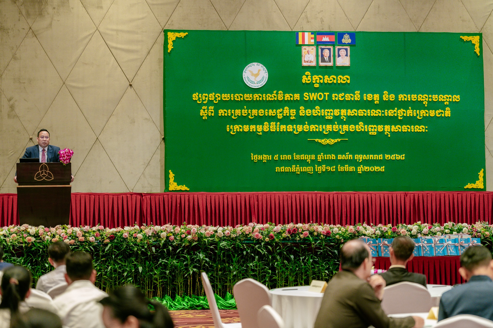 សិក្ខាសាលាផ្សព្វផ្សាយរបាយការណ៍វិភាគចំណុចខ្លាំង ចំណុចខ្សោយ កាលានុវត្តភាព និងការគំរាម (SWOT) រាជធានី ខេត្ត និង ការបណ្ដុះបណ្ដាល ស្តីពីការគ្រប់គ្រងសេដ្ឋកិច្ចនិងហិរញ្ញវត្ថុសាធារណៈនៅថ្នាក់ក្រោមជាតិ