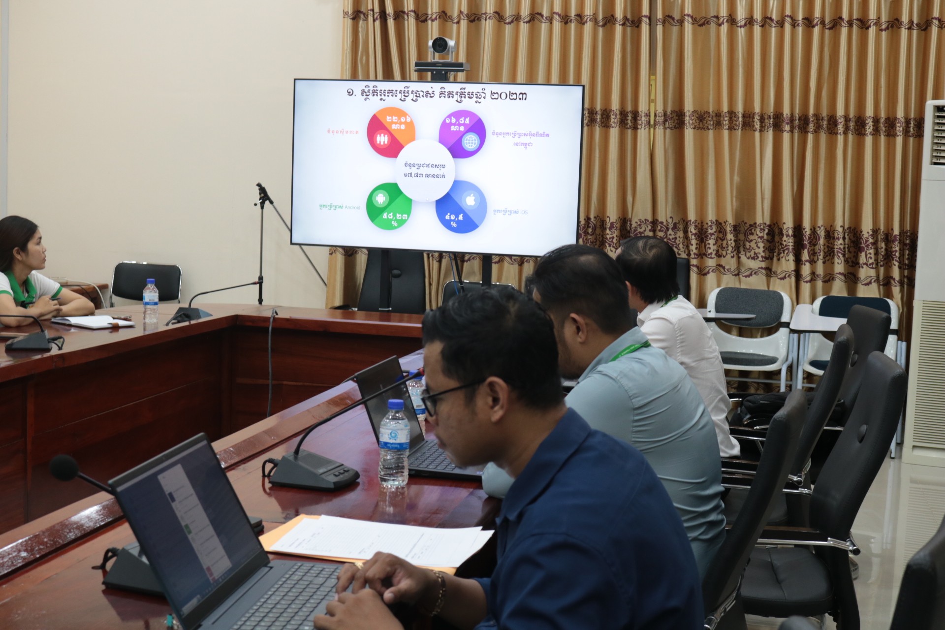 ប៉ៃលិន៖ នាព្រឹកថ្ងៃចន្ទ ៥រោច ខែពិសាខ ឆ្នាំរោង ឆស័ក ព.ស២៥៦៨ ត្រូវនឹងថ្ងៃទី២៧ ខែឧសភា ឆ្នាំ២០២៤ ក្រុមការងារប្រព័ន្ធFMIS បានចុះមកបញ្ជ្រាបការយល់ដឹងផ្នែកសុវត្ថិភាពនៃការប្រើប្រាស់បច្ចេកវិទ្យាព័ត៌មាន, ត្រួតពិនិត្យ និងធ្វើតំហែរទាំឧបករណ៍សម្ភារបច្ចេកវិទ្យាព័ត៌មាន និងឧបករណ៍គាំទ្រកិច្ចប្រជុំសន្និសីទវីដេអូ,​ ពិនិត្យទៅលើការប្រើប្រាស់ប្រព័ន្ធបច្ចេកវិទ្យាព័ត៌មាននា និងលទ្ធភាពដែលអាចផ្ដល់ជូនសេវាអ៊ីនធឺណិតរួម ជូនដល់ថ្នាក់ដឹកនាំមន្ទីរ និងមន្ត្រីរាជការ នៃមន្ទីរសហវខេត្តប៉ៃលិន។